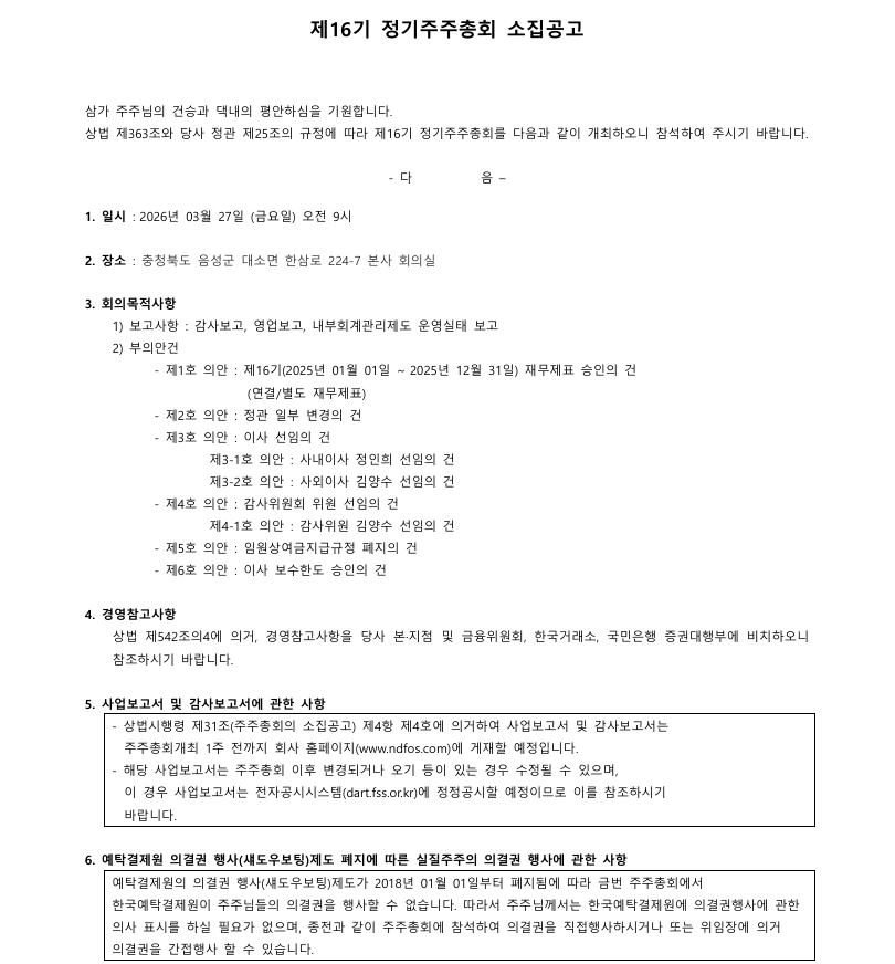 [공고] 제16기 정기주주총회 소집공고
